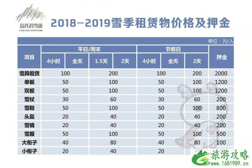 雪具租赁价格表
